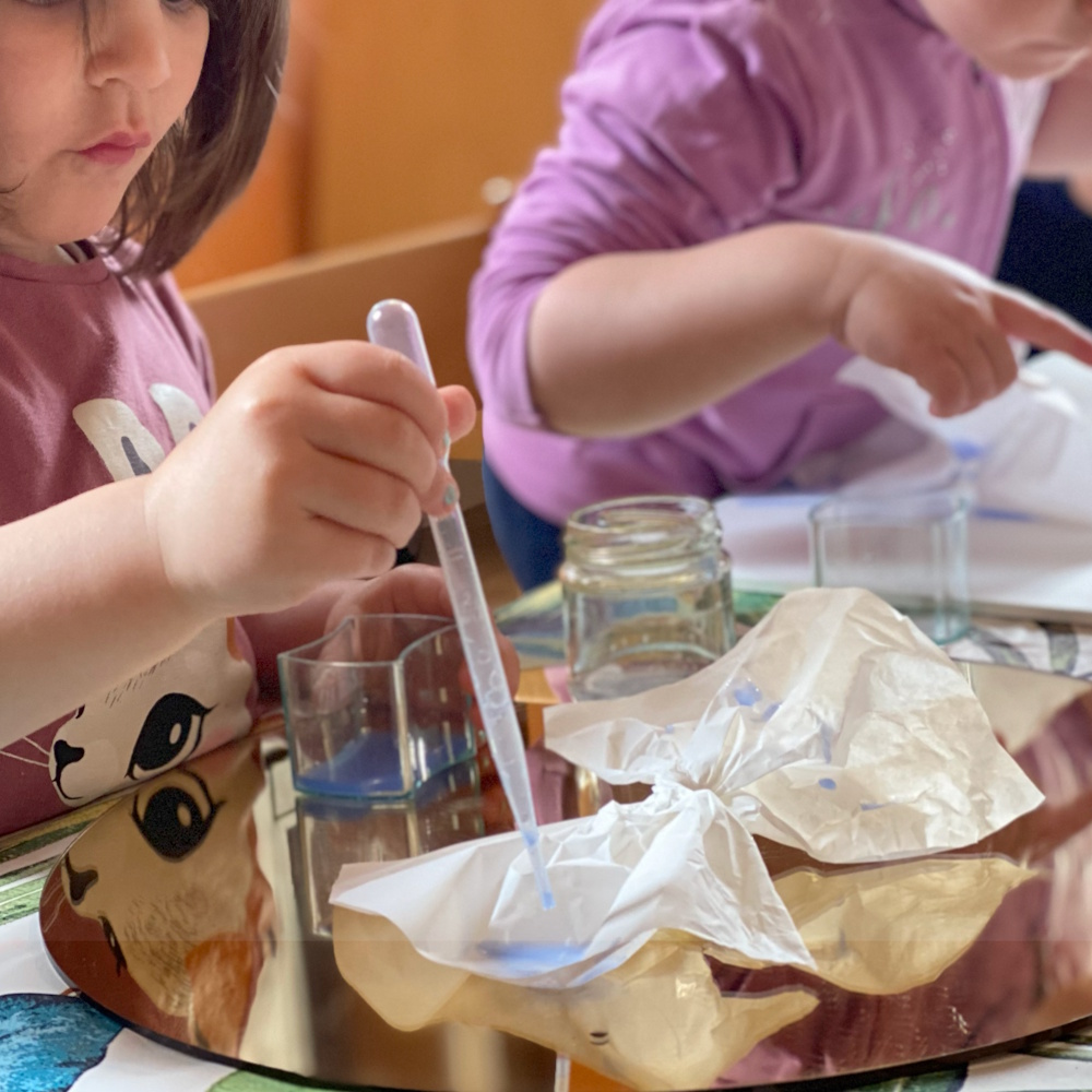 Proponiamo esperienze e materiali che intrecciano tanti diversi linguaggi per sperimentare abilità, competenze, possibilità e sosteniamo il dialogo tra essi sostenendo lo sviluppo del pensiero creativo.